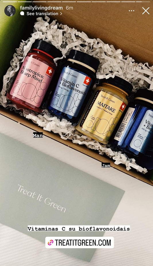 Esu maitinanti mama, todėl labai atidžiai renkuosi papildus. Pasikonsultavau su šeimos daktare ir Treat It Green atstovais, man tinka moters essentials rinkinys. Dar esu vartojusi jų B grupės vitaminų kompleksą, nepakeičiamas reikalas.